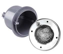 | Pool Light, Housing Material Stainless Steel, 12V, 1 Watts, Number of Lamps 1, Lamp Type LED, For Use With Concrete Pools, Conduit Size 3/8 In., Includes Light, SS Niche, Lamp, 12-ft. Power Cord |